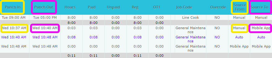 If a Source is Manual, it means that the punch was created or changed by a user in the portal.