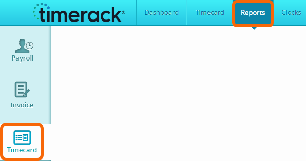 Manual timecard edits can also be viewed by running a report. Click Reports in the top navigation menu and then select Timecard on the left navigation menu. | ![]() |