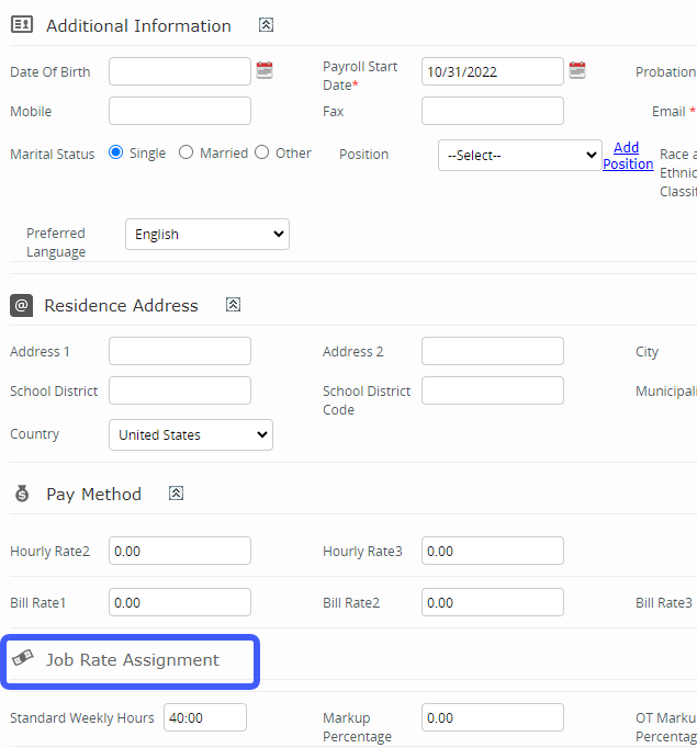 2) Scroll down to the Job Rate Assignment section. | ![]() |