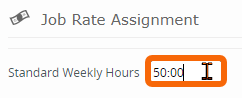 | 3) Update the Standard Weekly Hours field. The applicable number of Standard Weekly Hours is found by multiplying the desired number of hours per day by five (5). For example, to allow ten (10) hours per day, enter fifty (50:00). | ![]() |