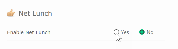 Activate Net Lunch by selecting Yes for Enable Net Lunch.