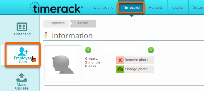 1) Click Timecard in the top navigation menu and then select Employee Data on the left navigation menu.
